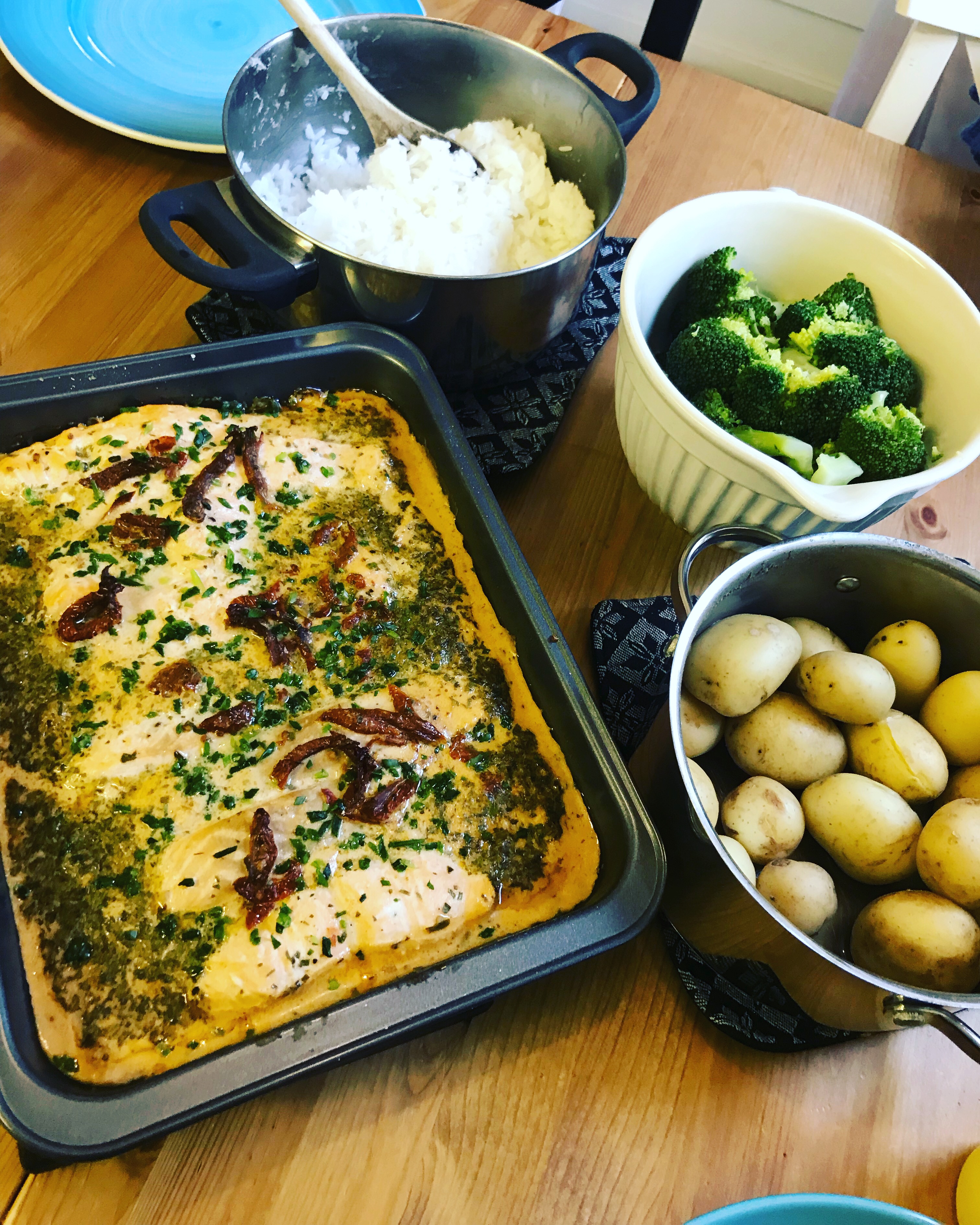 - Kör i ugnen i ca 200 grader i 15-20 minuter (beroende av storlek på fiskbitarna)